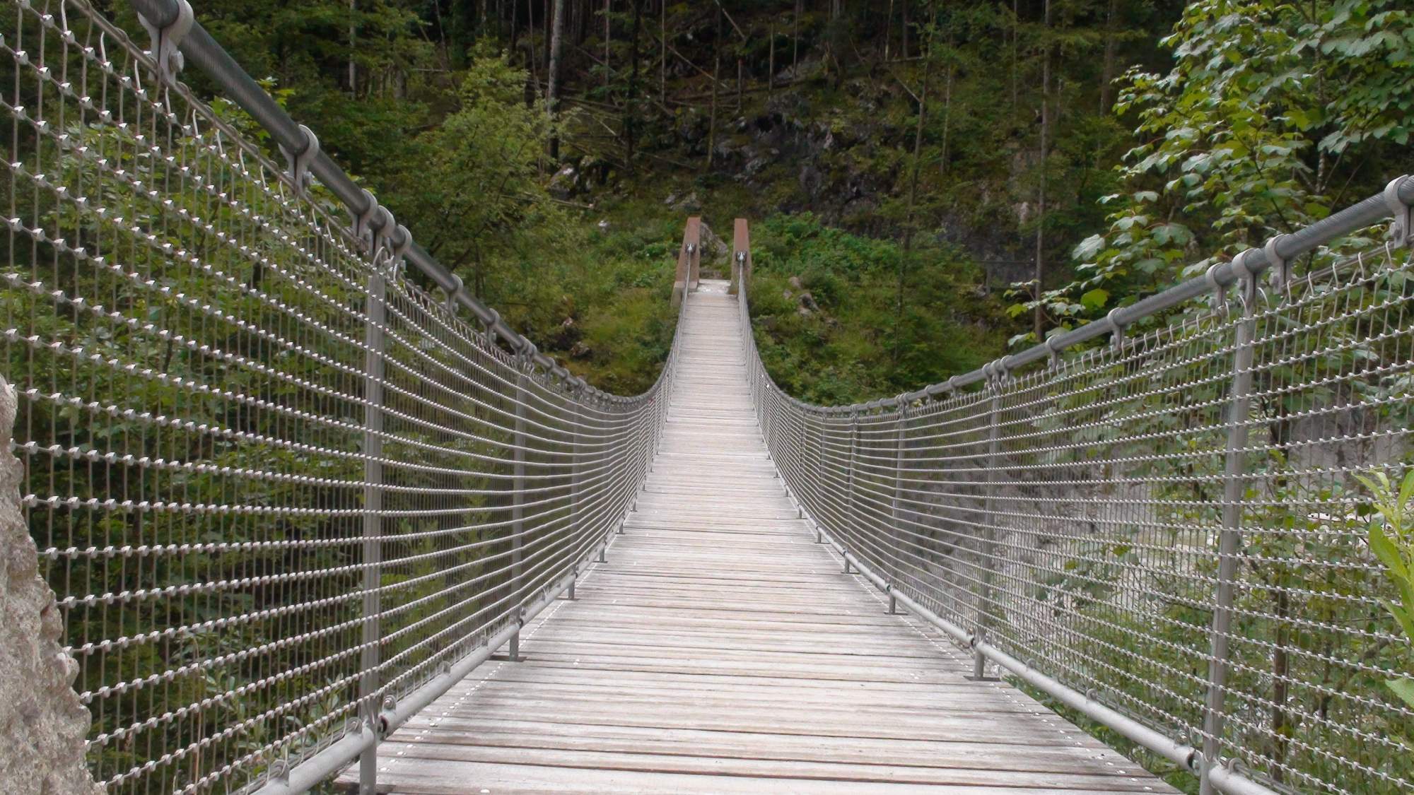 Sám jsem zvědavý zda-li to vyjedu. Půl kilometru dlouhé stoupání zvládám, ale už to není žádná houbařina. Pro lidi, kteří jdou dolu jsem atrakcí. Přijíždím k bráně do národního parku Berchtesgaden a jsem trochu nervózní, než zjistím, že kola dále můžou. Jedu. S přibývající vzdáleností ubývá lidí a narůstá stoupání. Ale je to krása. Když už stoupání dosahuje cca 12%, zastavuji a nenechám si ujít pohled na horskou řeku s lanovým mostem.