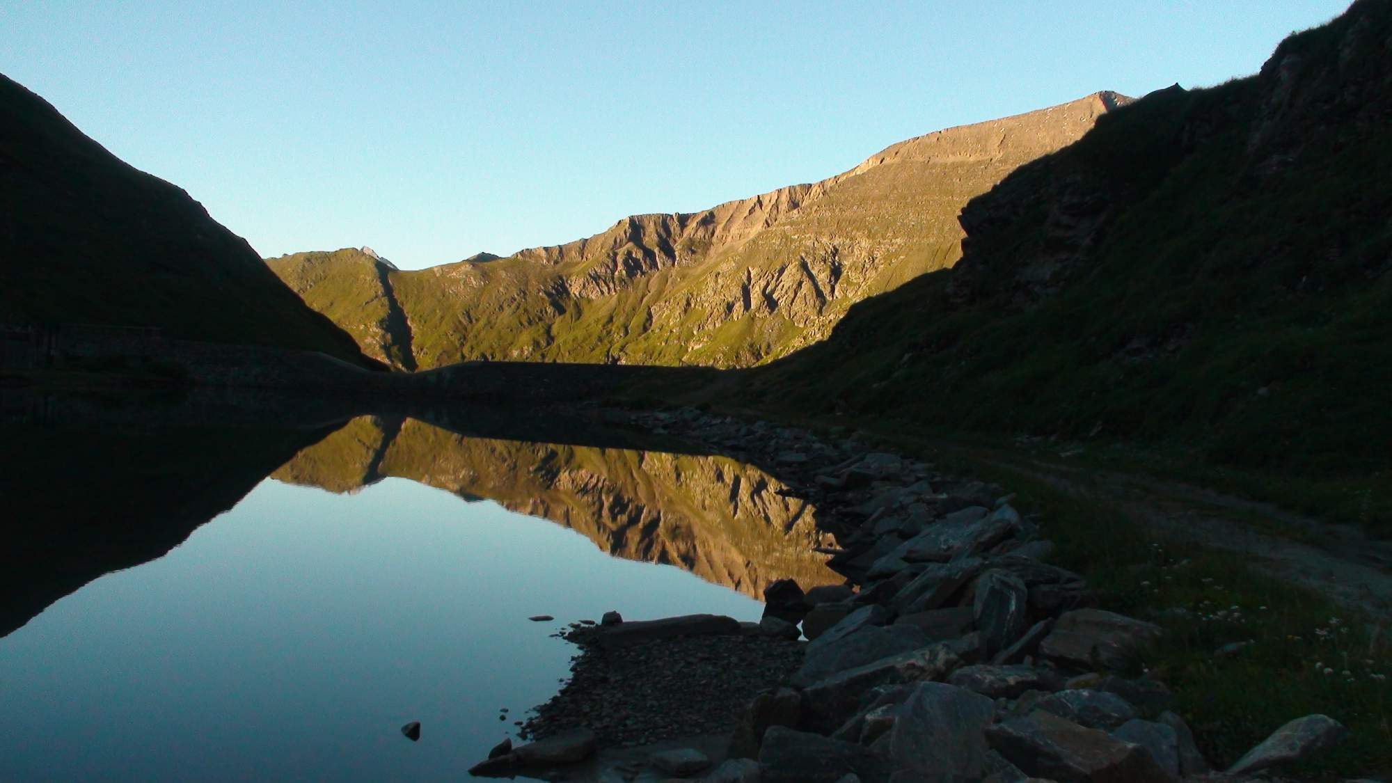 V nejnižší bodě (1900m) odbočuji na kruhovém objezdu doprava na císařskou vyhlídku, k které zbývá posledních 8 km. Slunce začíná rychle klesat, což je signálem, že již budu muset vážně pohledat místo noclehu. Kopce nad 2 tis. jsou již pochopitelně holé, takže nalézt „neviditelné“ místo bude velký problém. Několikrát zastavuji, vybíhám, hodnotím. Už jsme našel i vhodné místo relativně zašité, ale zde není šance kolo vytlačit. Už začíná být šero. Jsem v předposlední zatáčce, necelé dva km od vyhlídky. Stojí tam auto, tak vyčkávám, než zmizí, abych vyrazil do ohrady pro pěší, neboť by bylo jasné, že se nejdu kochat pohledem na noční pleso Nassfeldspeicher. Bohužel dlouho se nic neděje. Vypadá, že tam budou nocovat v autě. Tak se jdu pěšky podívat, zda-li by to tam šlo. Jo, dalo by se to, od cesty téměř vidět není, ale je tam burácející vodopád. Vracím se pro kolo a musím vyřešit zapeklitý problém, hlavně rychle, protože světla rychle ubývá jak Japonců na Iwodžimě za druhé světové války. Je tam klikatý vlez pro pěší, ale s mým kolem tam určitě neprojedu. Vše sházet a naházet, je + 10 min. A už vím. Zpět je plot nižší, cca 60 cm, to by se mi mohl podařit, kolo přehodit. Ještě zkouším elektrický ohradník, jestli nekope. Takže neochotně nabízím prst. Super, je vypnutý. Beru tedy kolo, přehazuji přes dřevený plot a pokládám a najednou. Líssssk. Taková šlupka. Pouštím kolo a uskakuji. Sakra vždyť jsem to zkoušel. No jo, tam bude asi zpožďovač. Houstone, máme problém. Kolo je napasované mezi plotem a ohradníkem. Jen krátce přemýšlím, jak s toho ven. Prostě kolo s bebechama musím vytáhnout. Přesto nejede vlak. Jdu nato. Snažím se eliminovat kontakt. A další šlupka. Statečně přijímám rány v rámci budoucího blahobytu, jakou soudruzi u Stalingradu :D. Super kolo je venku. Od ohrady k cíli to mám 50m. Je to takový malý kopeček nad oním plesem. Jediné rovné místečko, nakonec vyhodnocuji, že je trochu od cesty vidět. O kousek dále je ještě jedno, to už je horší a navíc se trochu svažuje. Dá se, ale je úplně na okraji kopečku a pod ním sráz dolu.