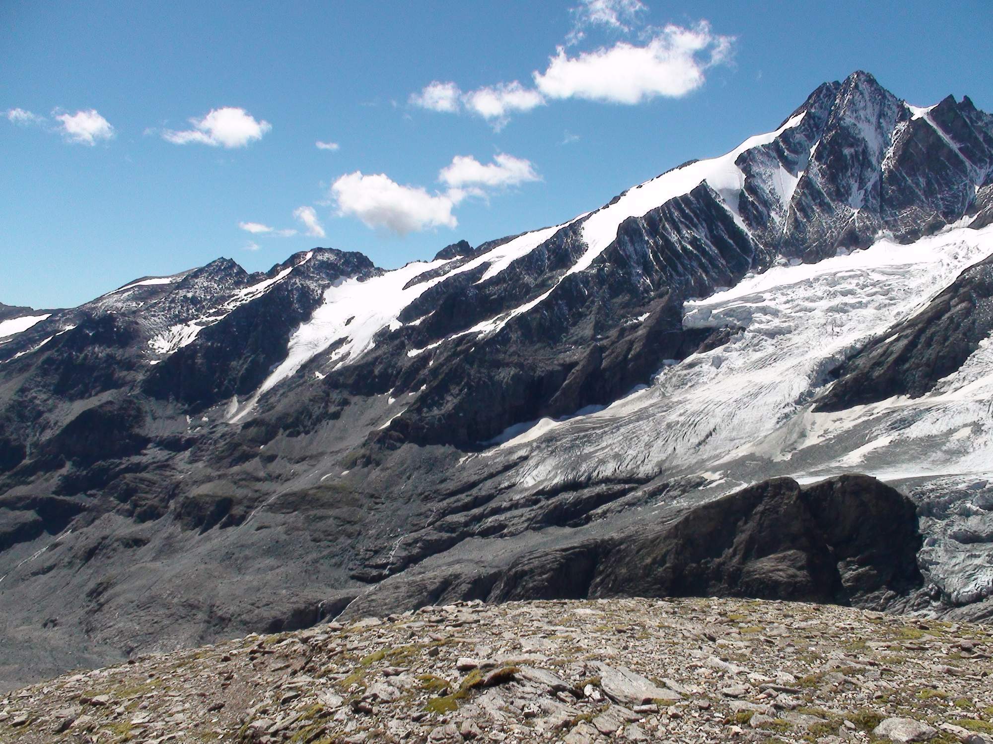 Je nádherný slunečný a dá se říct i teplý den. To neplatí v tunelu, tam je jak v ledničce. Tunel má čtyři vyhlídkové „balkony“. Snad, aby návštěvníkům po částech servírovali tu nádheru. Později tunel končí a lidi již vystupují na úbočí hory. Otevírá se naplno výhled na ledovec. 300 m pod námi a 1400 m nad ním se tyčící vrcholek Glossglockneru.